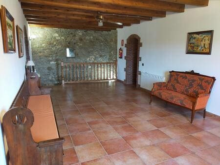 La cocina está equipada con encimera, horno, lavavajillas, dos neveras y un gran espacio para cocinar ya que también dispone de una chimenea espectacular, en la que se puede saborear las mejores carnes y verduras del Montseny, hechas con leña de encina, que se proporciona a los clientes. Esta cocina comunica con un comedor de grandes dimensiones, donde se puede disfrutar de grandes comidas con familia o amigos.